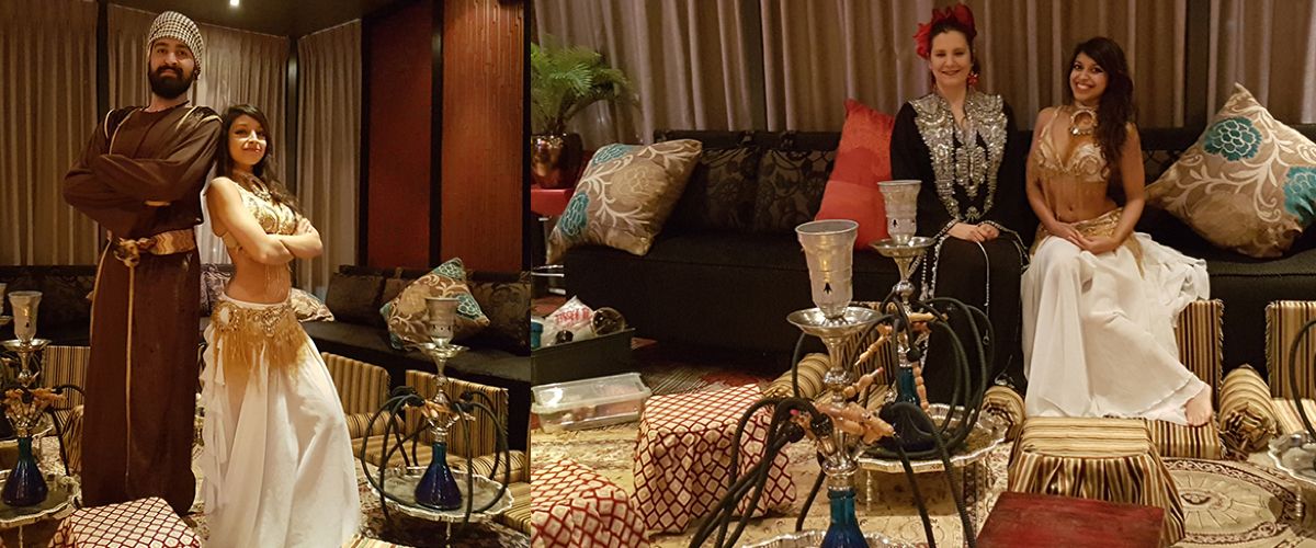 Er zal 4 uur lang een begeleider aanwezig zijn met waterpijpen, in bijpassende kleding.